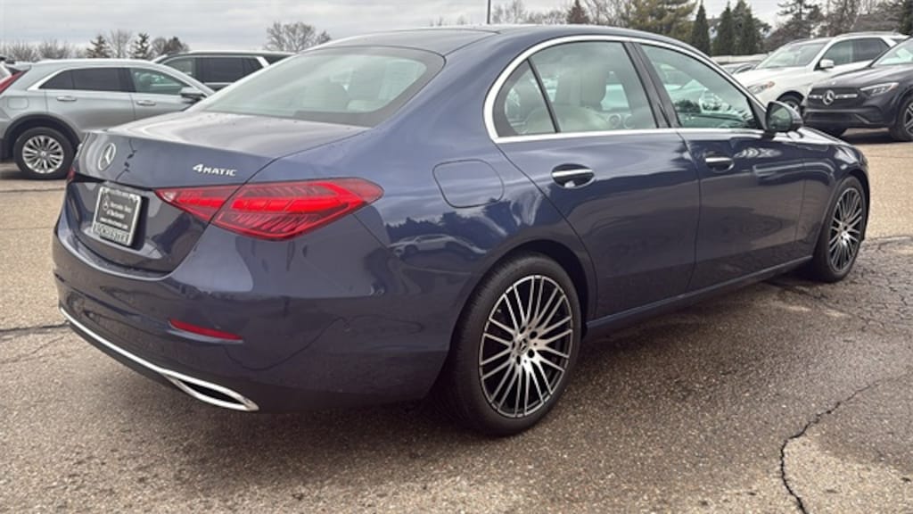 CARFAX One-Owner. Clean CARFAX. Certified CPO. Twilight Blue Metallic 2024 Mercedes-Benz C300 C Class 4MATIC AWD, Burmester 3D Surround Sound, Exclusive Trim Package, Heated Front Seats, Ventilated Front Seats, Illuminated Door Sills, MB Navigation, Music Streaming, Panorama Sunroof, Sound Personalization, Surround View System, Apple Car Play / Android Auto