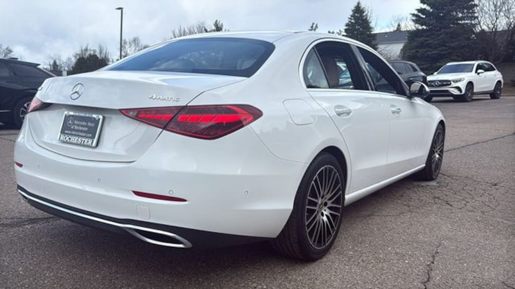 CARFAX One-Owner. Clean CARFAX. Certified CPO. Polar White on Macchiato Beige 2024 Mercedes-Benz C-Class C300W4. 4MATIC AWD, Apple CarPlay / Android Auto, Auto-dimming door mirrors, Front dual zone A/C, Heated door mirrors, Heated Front Seats, Memory seat, Power moonroof, Premium audio system: MBUX, SiriusXM Satellite Radio.